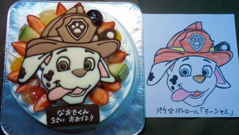 更新日: 2024年5月14日2023年4月5日キャラクター21cm(7号サイズ) パウパトロール マーシャル 7号(21cm)~ いぬ メロディ 福岡市 南区でキャラクターケーキや似顔絵ケーキなどを作っています、 色々なキャラが有りますので、検索して見てください。 値段は価格表を見てください。