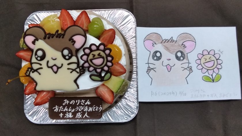 ハム太郎と花のケーキ (6号・18cm)〜